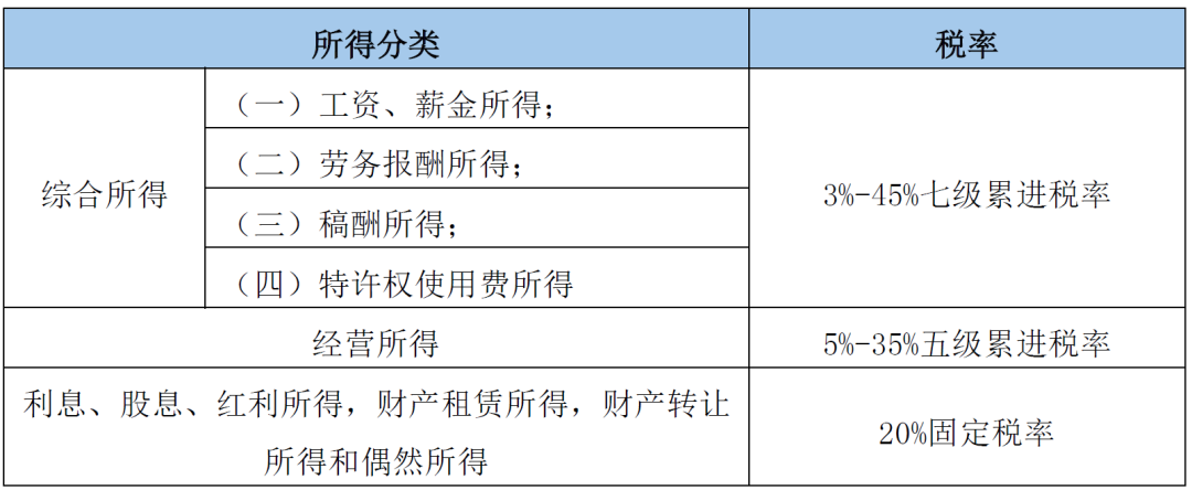 注:上述计税基础应为所得,而非收入,即需扣除相应的成本,如财产转让应扣除财产购入原值。