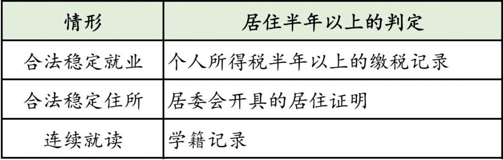 《办法》对于“半年以上”的判定方式并未做具体规定,且这个半年应该是“任意连续6个月”的意思,而不会限定在自然年度内的6个月。此外,对于证明材料,我们猜测会参照大陆人的居住证办理要求: