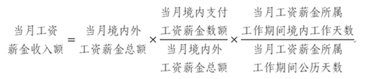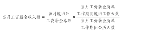 答:在一个纳税年度内,在境内累计居住不超过90天的非居民个人,仅就归属于境内工作期间并由境内雇主支付或者负担的工资薪金所得计算缴纳个人所得税。当月工资薪金收入额的计算公式如下: