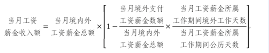 答:在境内居住累计满183天的年度连续不满六年的无住所居民个人,全部境内所得(包括境内支付和境外支付)和境内支付的境外所得为境内应计税的收入额。工资薪金所得收入额的计算公式如下: