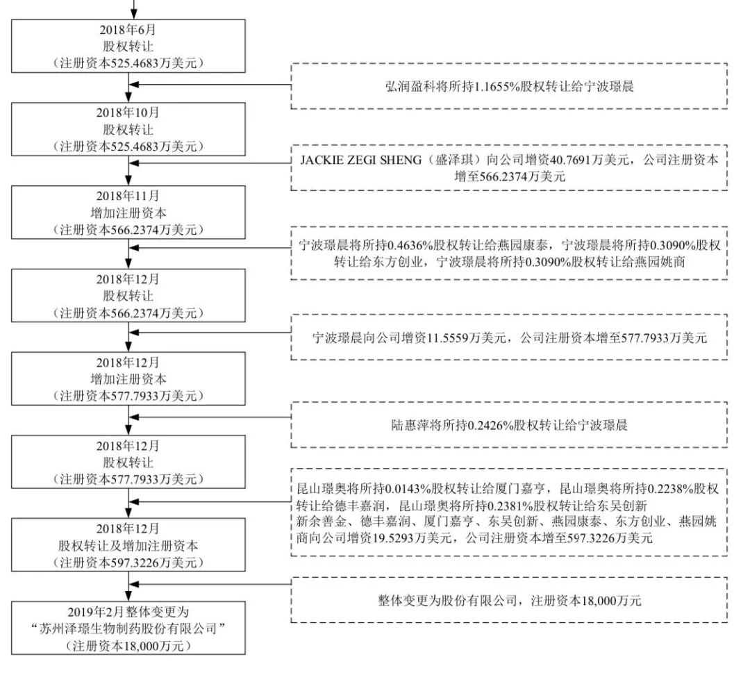 上述资料可以看出,公司2017年进行外部机构增值时,估值就已达到4.83亿美元,2018年两轮外部机构增资估值则为5亿美元和6.93亿美元,2018年底更一举达到47.5亿元人民币的估值。正是这一轮融资,成功将泽璟生物送上科创板。