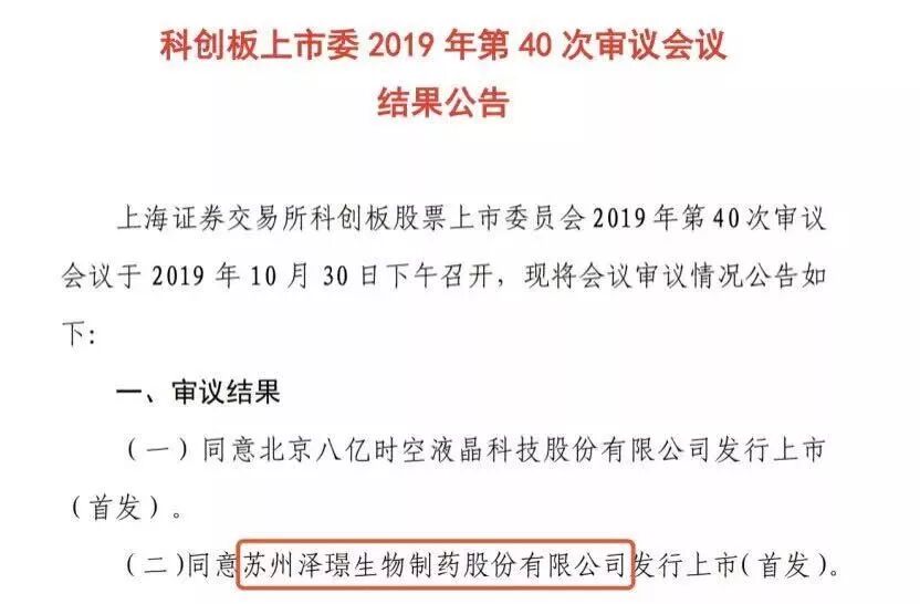 10月30日下午,科创板上市委公告同意苏州泽璟生物制药股份有限公司(以下简称“泽璟生物”)发行上市,成为科创板开板以来首家以第五套标准过会的企业,也是中国资本市场发展史上第一家以亏损状态登陆A股的企业。