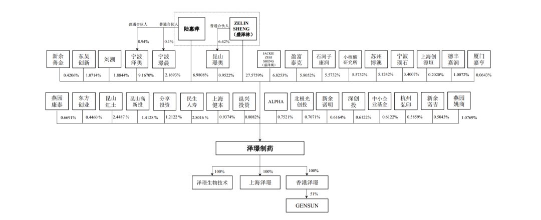 公开资料说明,这家公司从出生开始,就显示了强大的融资能力。在一轮又一轮的股权转让或者增资扩股过程中,公司相继引入东方创业、中小企业基金、北极光创投、小核酸研究所、民生保险等多家知名投资机构。以下是泽璟生物的股权结构图: