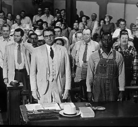 黑人在这部电影中完全是没有话语权的角色,他们只能坐着等待,被召之即来挥之即去,对于冷眼他们只能默默承受。但他们仍旧带给大多数白人一种恐惧感。就像在书里哈珀•李写道的那样:“世界上一共有四种人。像我们和我们的邻居这样的普通人(‘我们’指杰姆),像坎宁安那样的住在树林里的人,像尤厄尔那样住在垃圾场上的人,还有黑人。”“我们”不喜欢坎宁安那样的人,坎宁安不喜欢尤厄尔那样的人,而尤厄尔憎恶黑人。而陪审团是由坎宁安那样的人组成的。黑人处在最下层,最被蔑视和忽略的底层,人们对于自己不了解和鄙视的种族总会有种没缘由的恐惧感,他们虽然自觉有优越感,却仍旧觉得对方野蛮,粗横,攻击力强。哪怕到了今天种族问题依然是美国社会不可忽略的问题,在2004年引起广泛关注的电影“撞车”(Crash)中,桑德拉•布洛克饰演的白人女性在街上看到黑人经过,仍会不由自主地闪躲。经过几十年的社会发展,不断地融合,这种不由自主地恐惧仍旧存在。只是内在的原因更加复杂隐秘。