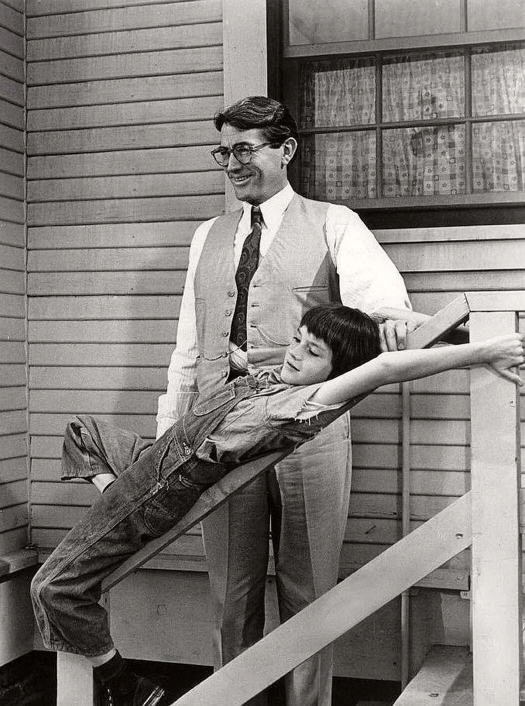 杰姆和斯考特在跟随父亲探访汤姆•鲁宾逊一家时,初次体会到了整件事情的可怖之处。杰姆在黑暗中独自坐在车中等候父亲,尤厄尔先生不知道从哪里冒了出来,佝偻着身体,醉醺醺地扑向车窗,贼头贼脑地窥视着熟睡中的斯考特,然后紧贴着玻璃恶狠狠地盯着杰姆,扭曲着五官,露出了嘴里的假牙。杰姆有些被吓坏了,在车子里狭小的空间中,他感受到真正的压迫感,来自同类的威胁,这些不再是流言蜚语的空想,而是眼前的“恶魔”。幸好父亲及时出现了,他像个不容置疑的守护神出现在画面的正中央,表情严肃,稍微皱起眉头。尤厄尔先生已看到父亲立刻矮了半截,从牙缝里挤出了一句“黑人维护者”就溜走了。他每次出现都不怀好意,却总是看到阿迪克斯就退缩了回去,似乎骂人只是用来掩饰他的心虚。哪怕在庭审结束后,他吐了阿迪克斯一脸的口水,阿迪克斯也只是不卑不亢地用手绢抹掉了。阿迪克斯越是平静,越使得尤厄尔无地自容。