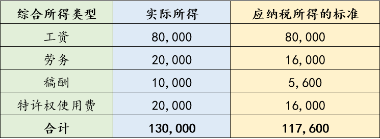 如某个人的所得具体数字如下,则其应纳税所得额明细为:
