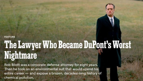回到公司,Bilott和他的老板Terp报告说想要接下这个案件。Terp勉强答应了,以为只是简单的走个基本程序。没想到这一案件,揭开了杜邦集团整整半个多世纪的“黑色水域”。