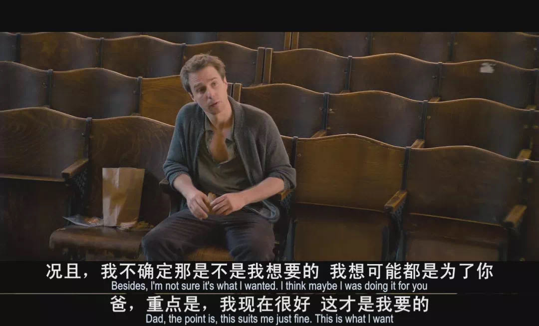 父子二人的言语中,交替着压抑隐忍的情绪碰撞和矛盾冲突。我可以理解是当父亲看到了自己的窘迫后,罗伯特有所表现的恐慌和疼痛,是父亲的出现,揭穿了自己善意的谎言。而这种善意的谎言,却是连接亲情的纽带。