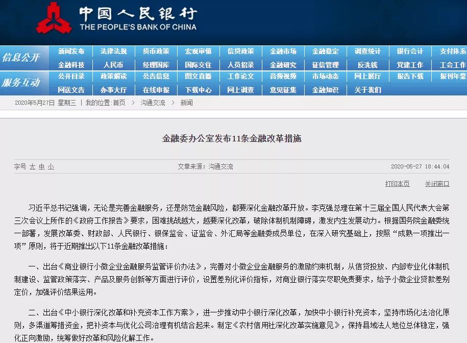 金融委办公室5月27日发布的11条金融改革措施中,涉及中小银行改革方案、创业板改革并试点注册制、新三板转板、加强金融违法行为行政处罚等内容,将按照“成熟一项推出一项”原则,于近期推出这些金融改革措施。