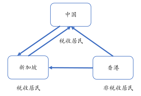 仍以张某为例。如张某同时构成中国税收居民和新加坡税收居民的,其新加坡账户信息将会交换给中国国税总局,而其中国境内的账户信息也会交换给新加坡税务局;同理,其香港的账户信息也应该同时交换给中国国税总局和新加坡税务局。如下图: